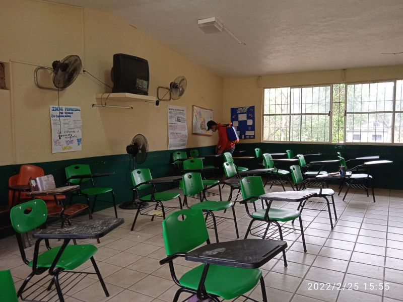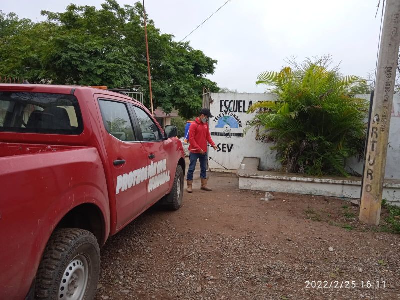 A petición de la comunidad estudiantil de la Telesecundaria Jaime Nunó, del poblado Corozal, el pasado sábado personal de Protección Civil realizó tareas de desinfección. En la prevención y la salud no hay fin de semana para el personal adscrito al municipio. La prioridad siempre será la atención.